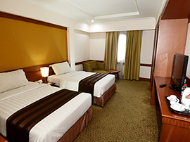 renowed throughout the city for the sheer opulence of its rooms and suites for the unique taste of our restaurant and the grandeur of its facilities. Nestled in the center of Jambi bussiness district, provides you 124 Premium class of rooms with fabulous views: the exotic Batanghari river and the dynamic town view. we will give you a taste of the luxurious features that are so much during your stay at Our hotel. Whether you are visiting us for bussiness or pleasure, you'll find that we have prepared everything to ensure your complete satisfaction. But about all, it's our dedication to discreet and troghtful service that sets us apart.