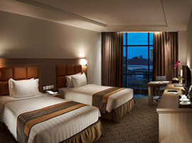 Located at the front-lobby level, flooded with natural light through its large windows, the Lobby Lounge is the ideal location to close that deal, relax and unwind with friends, catch up with a good selection of indonesian coffee selections. Enjoy the calming chill-out live acoustic music every evening and signature beverages whilst surfing the net with complimentary Wi-Fi Internet access.